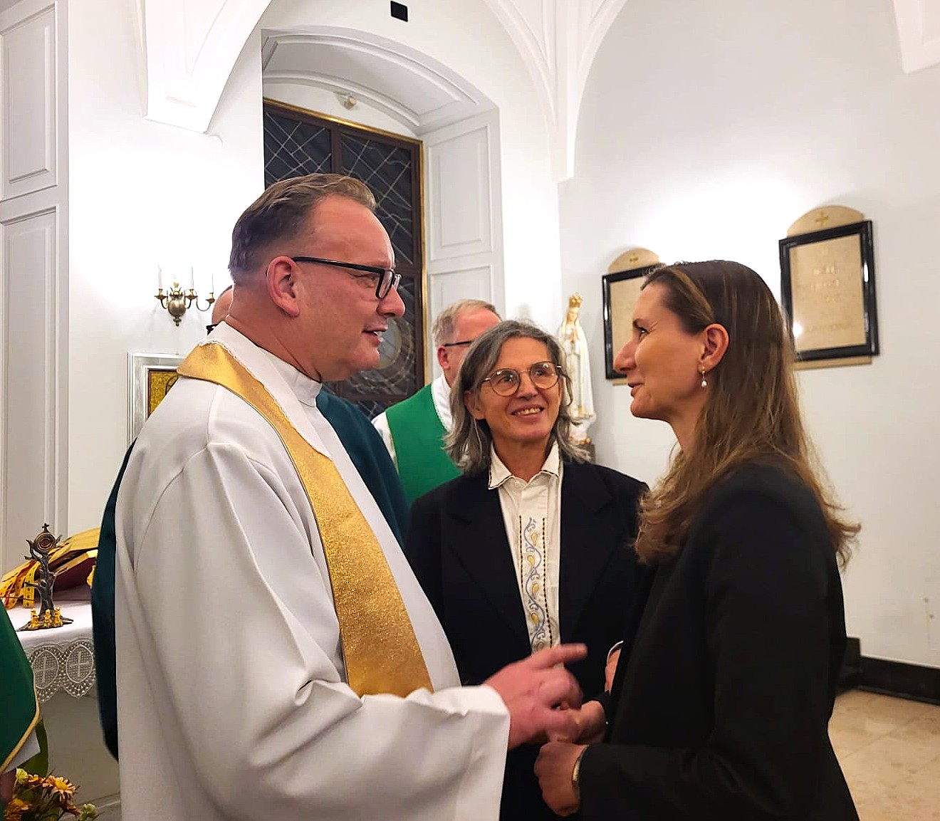 Na zaproszenie ks. Jarosława Wąsowicza SDB, kapelana pana Prezydenta Karola Nawrockiego, w środę 19 XI.2025 roku, lekarki reprezentujące stowarzyszenia lekarzy katolickich wzięły udział we Mszy św. o godz. 16:00 w Kaplicy Pałacu Prezydenckiego, wspólnie z Rycerzami Kolumba i członkami Klubu Gazety Polskiej. Eucharystię poprzedziła modlitwa różańcowa. OM KSLP reprezentowały specjalistki pediatrii: dr Grażyna Rybak, Prezes OM KSLP, dr Marzena Koszańska wiceprezes OM SKSLP, oraz dr n.med. Małgorzata Kępińska, Delegat OM KSLP, która była inicjatorką , pomysłodawczynią oraz pośrednikiem w kontakcie z Księdzem Kapelanem. Ksiądz Jarosław Wąsowicz jest salezjaninem i historykiem, zaangażowanym w inicjatywy patriotyczne i edukacyjne, od wielu lat organizuje pielgrzymki kibiców na Jasną Górę.